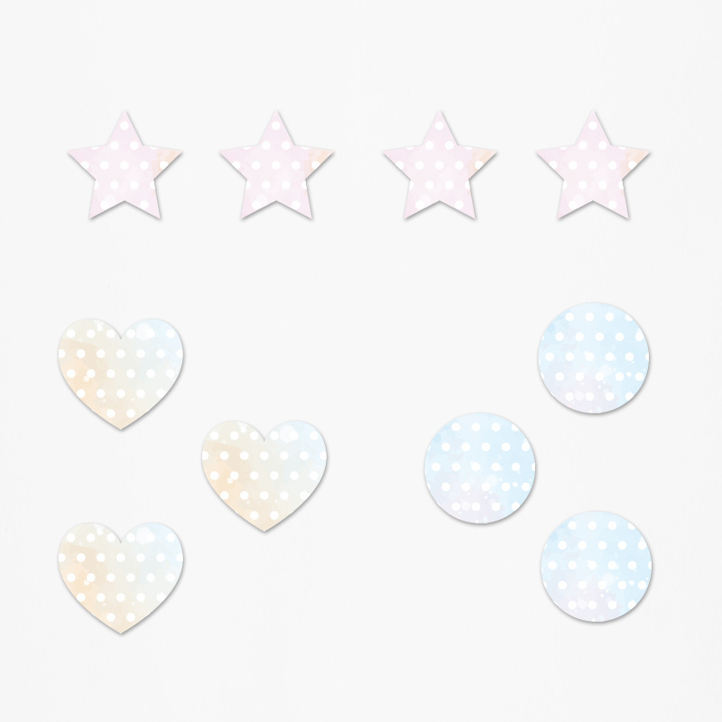 - Τεμάχια 10(4 αστέρια, 3 καρδίες, 3 κύκλοι)