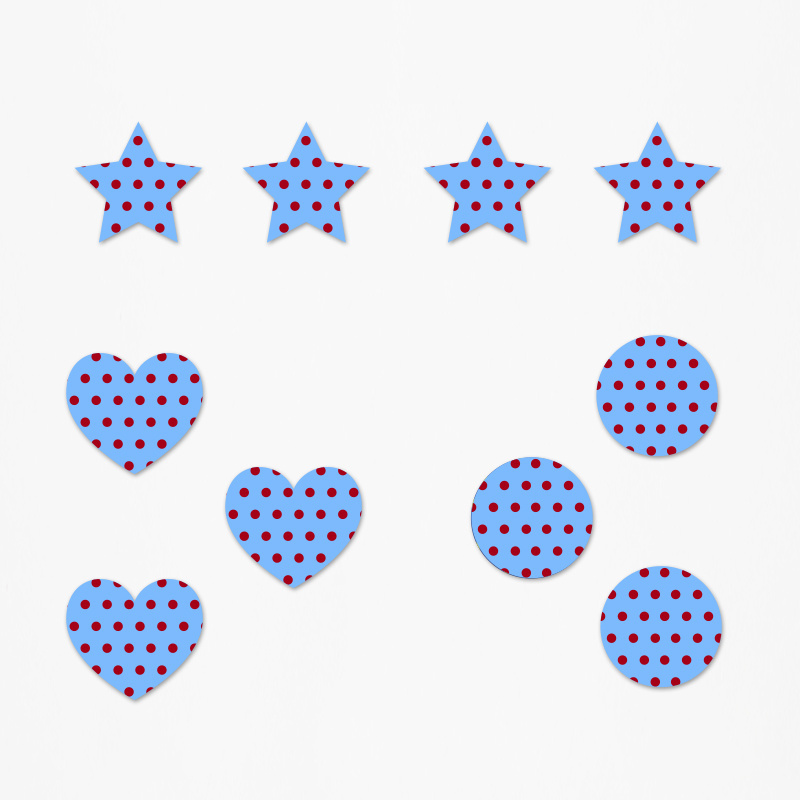 - Τεμάχια 10(4 αστέρια, 3 καρδίες, 3 κύκλοι)