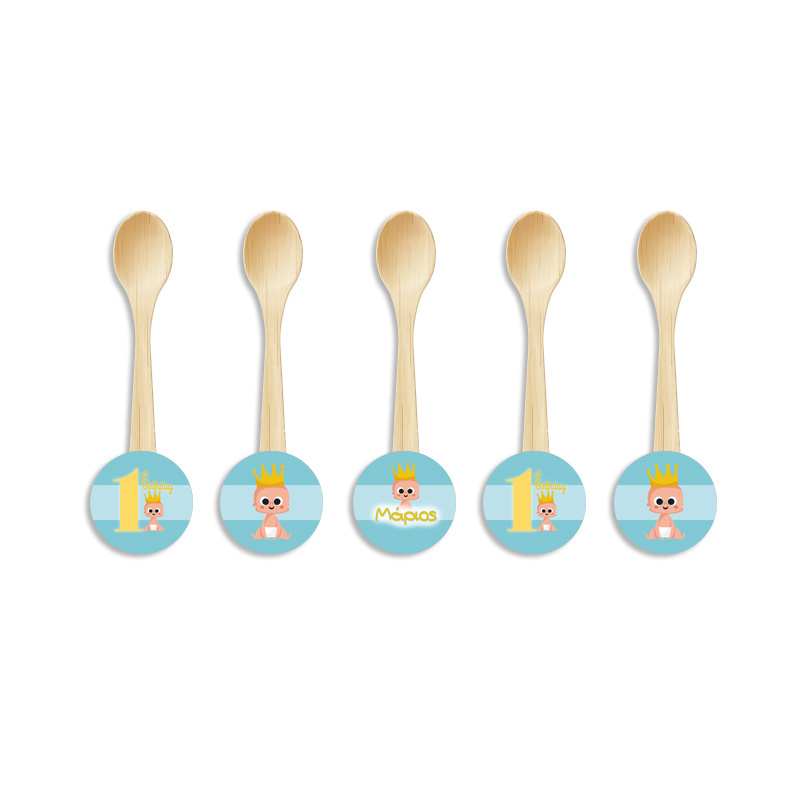 Ξύλινα Κουταλάκια με όνομα 1st Birthday boy για τον θεματικό μπουφέ σας.