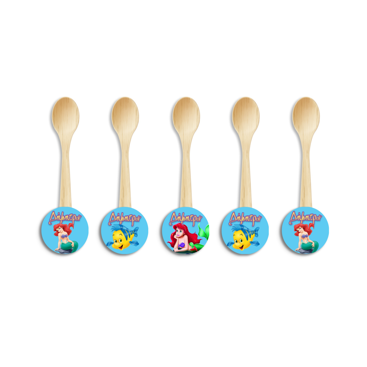 Ξύλινα Κουταλάκια με όνομα Ariel για τον θεματικό μπουφέ σας.
