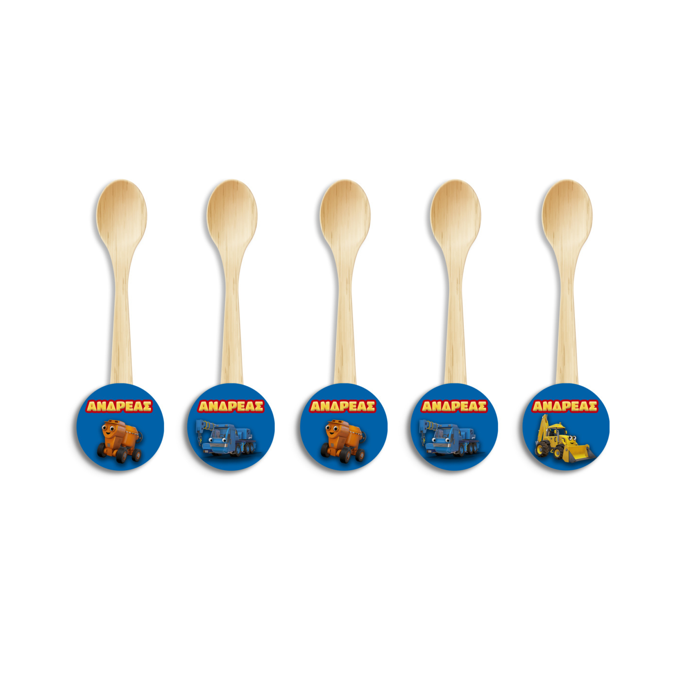 Ξύλινα Κουταλάκια με όνομα Μπομπ ο Μάστορας για τον θεματικό μπουφέ σας.