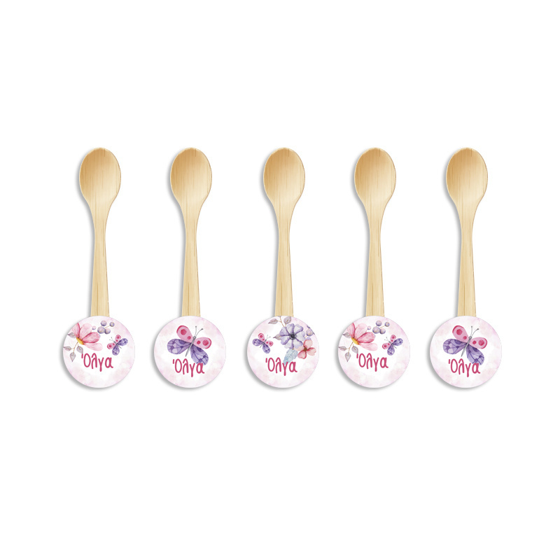 Ξύλινα Κουταλάκια με όνομα Butterfly για τον θεματικό μπουφέ σας.