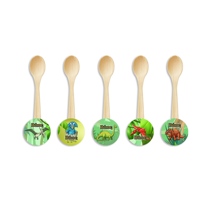 Ξύλινα Κουταλάκια με όνομα Δεινόσαυροι για τον θεματικό μπουφέ σας.