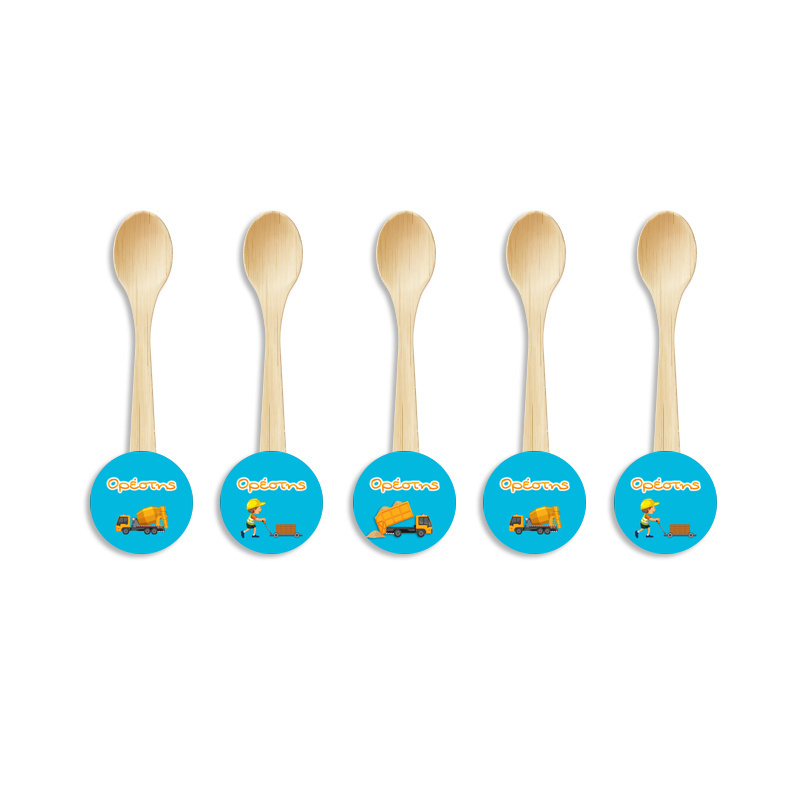 Ξύλινα Κουταλάκια με όνομα Εργοτάξιο για τον θεματικό μπουφέ σας.