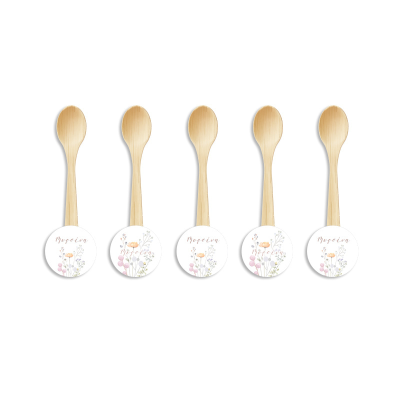 Ξύλινα Κουταλάκια με όνομα Floral Pastel για τον θεματικό μπουφέ σας.