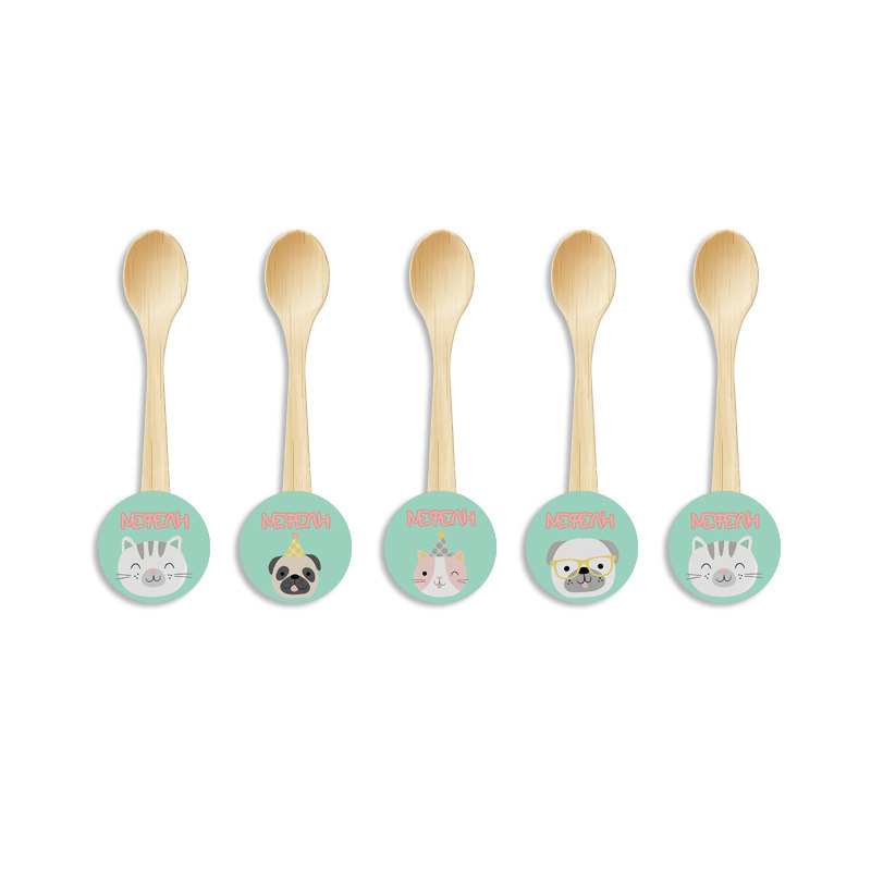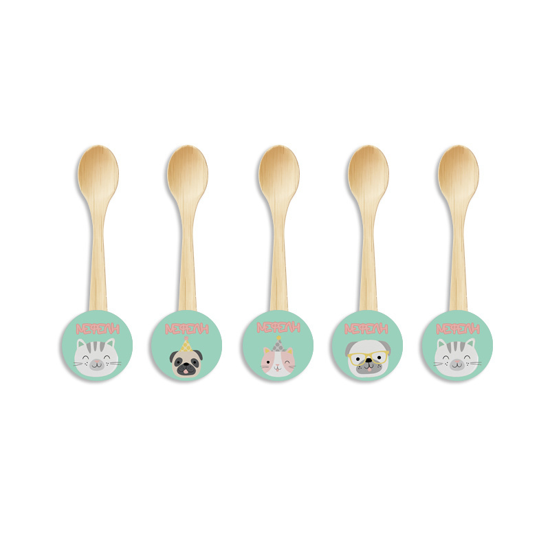 Ξύλινα Κουταλάκια με όνομα Hello Pets για τον θεματικό μπουφέ σας.