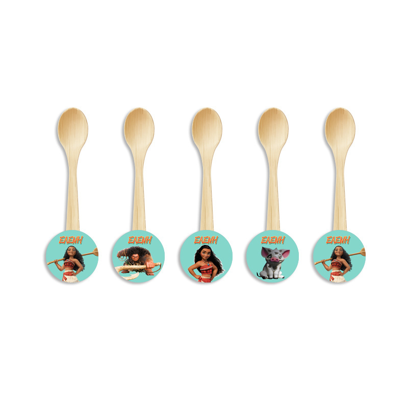Ξύλινα Κουταλάκια με όνομα Moana για τον θεματικό μπουφέ σας.