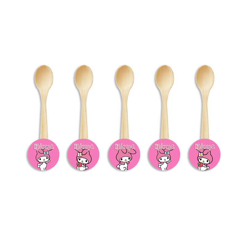 Ξύλινα Κουταλάκια με όνομα My Melody για τον θεματικό μπουφέ σας.