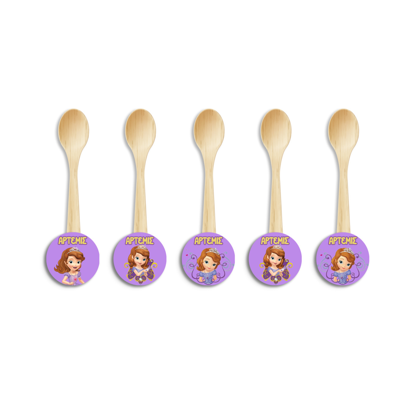 Ξύλινα Κουταλάκια με όνομα Πριγκίπισσα Σοφία για τον θεματικό μπουφέ σας.
