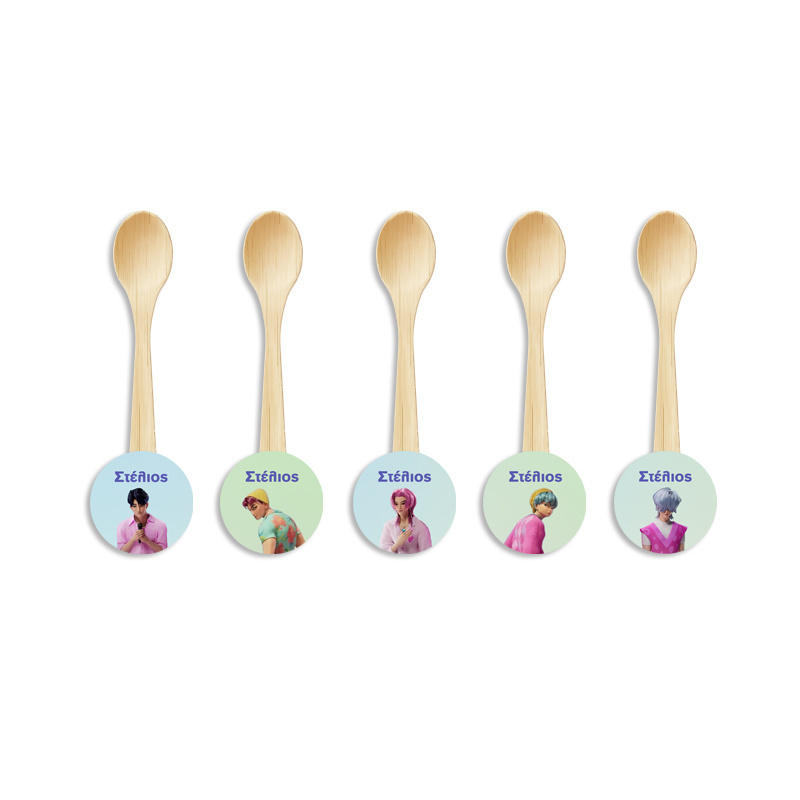 Ξύλινα Κουταλάκια με όνομα Saja Boys για τον θεματικό μπουφέ σας.