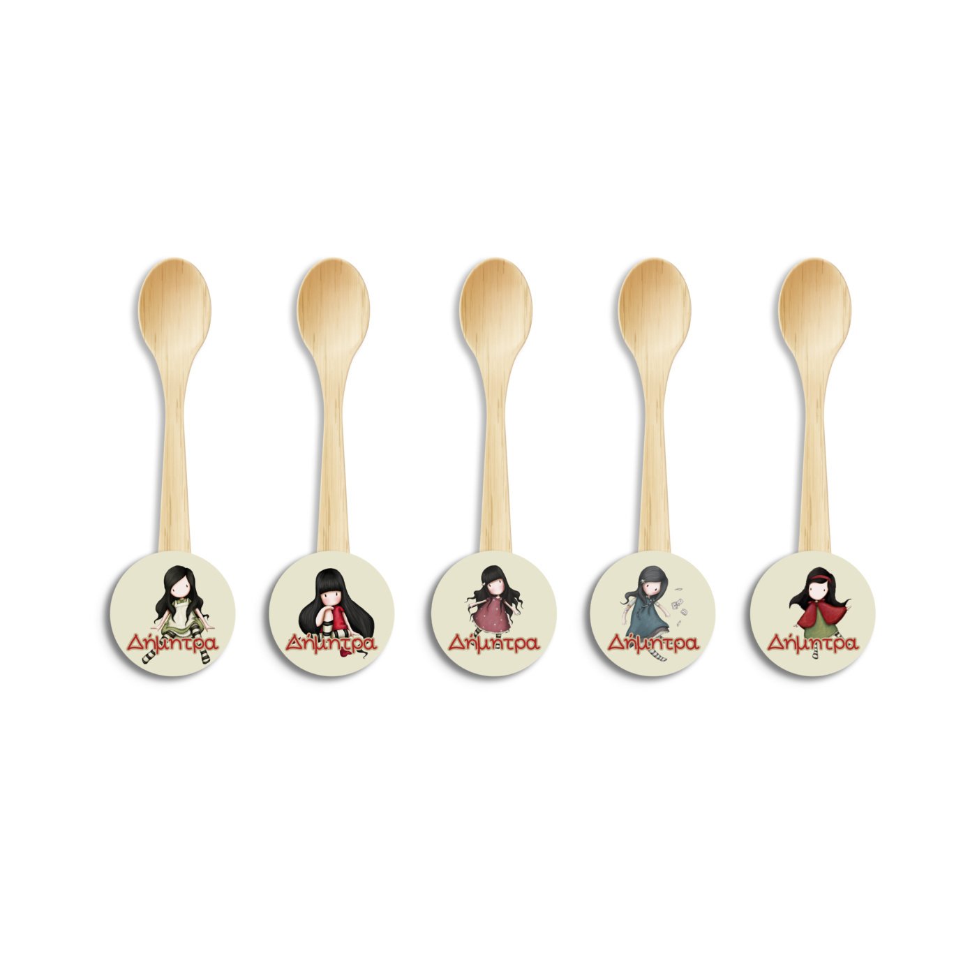 Ξύλινα Κουταλάκια με όνομα Santoro για τον θεματικό μπουφέ σας.