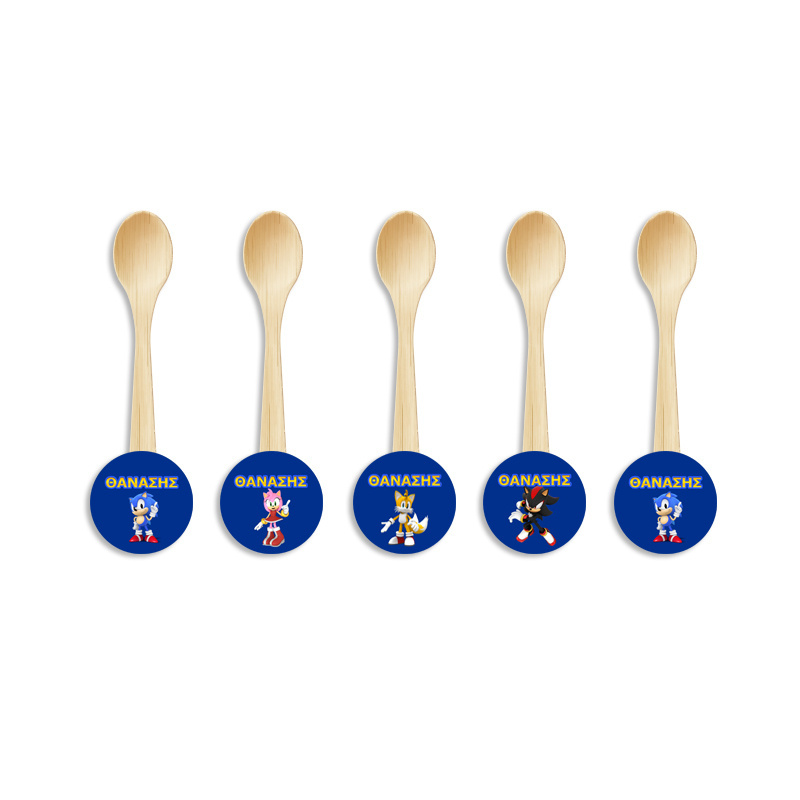Ξύλινα Κουταλάκια με όνομα Sonic για τον θεματικό μπουφέ σας.