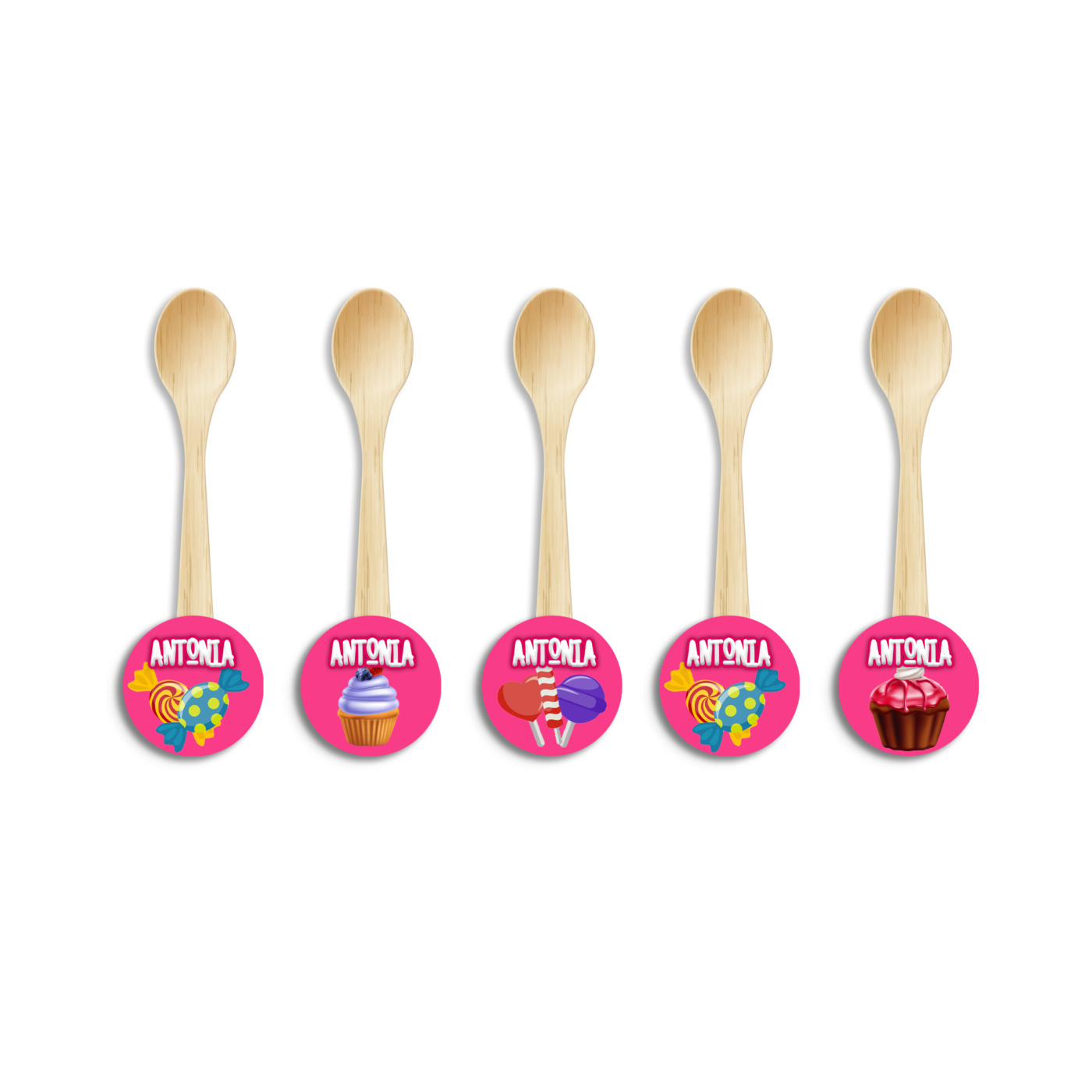 Ξύλινα Κουταλάκια με όνομα Sweet Shop για τον θεματικό μπουφέ σας.