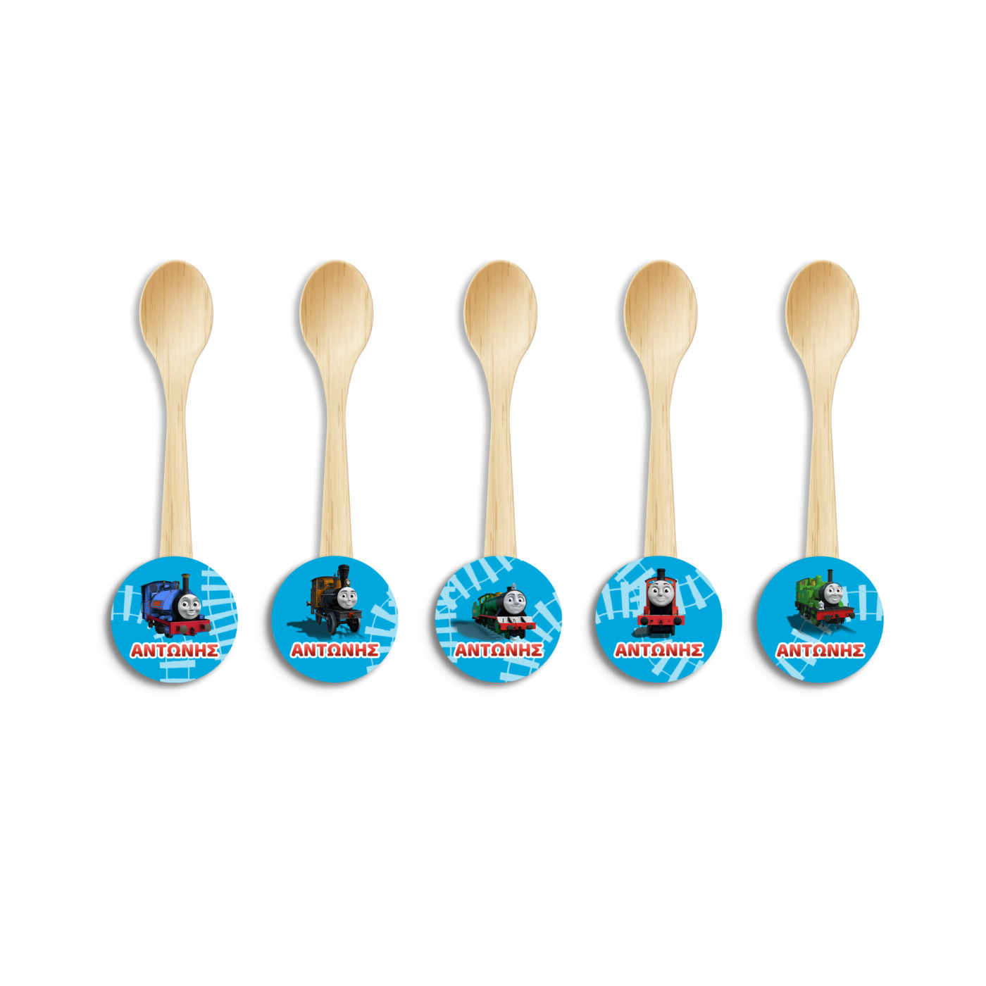 Ξύλινα Κουταλάκια με όνομα Τόμας το τρενάκι για τον θεματικό μπουφέ σας.