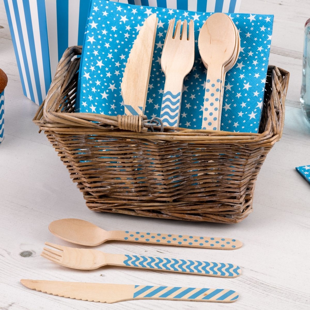 Ξύλινα Μαχαιροπίρουνα Μπλε Patterns 24 τεμ.