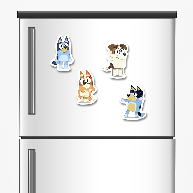 Τα ξύλινα μαγνητάκια Bluey σε διάσταση 5cm και πακέτο 4 τεμαχίων είναι μια μοναδική επιλογή διακόσμησης. Κατάλληλα για δωράκια πάρτυ ή για στοιχεία σε μπομπονιέρα Βάπτισης .