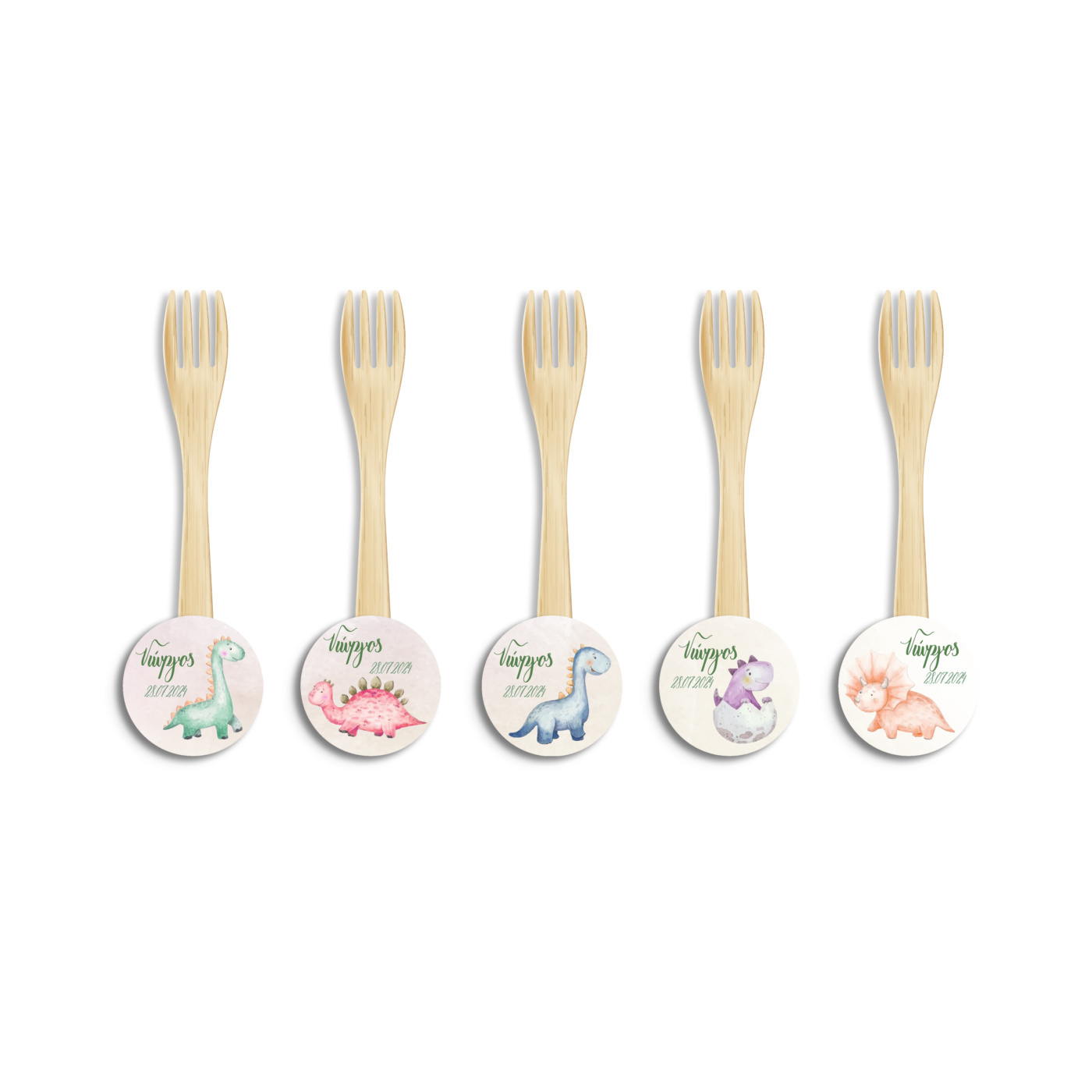 Ξύλινα Πιρουνάκια με όνομα Baby Dino για τον θεματικό μπουφέ σας.