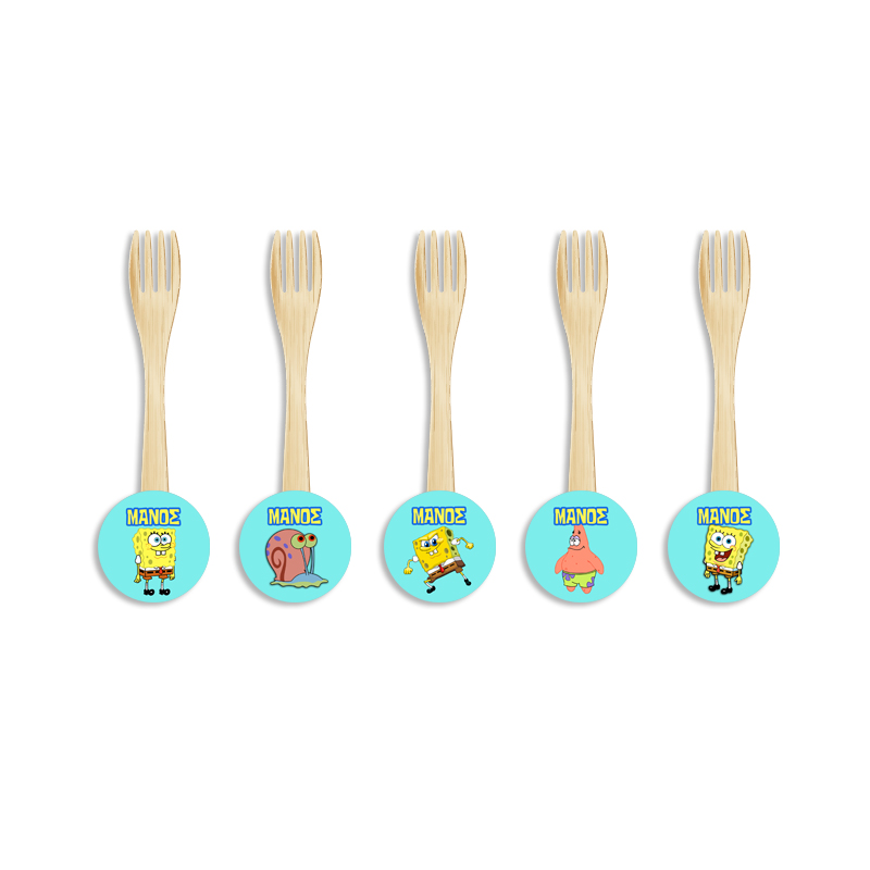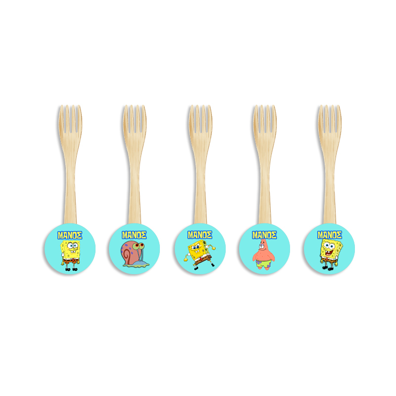 Ξύλινα Πιρουνάκια με όνομα Μπομπ Σφουγγαράκης για τον θεματικό μπουφέ σας.