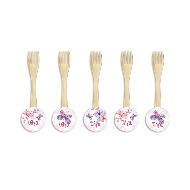 Ξύλινα Πιρουνάκια με όνομα Butterfly για τον θεματικό μπουφέ σας.