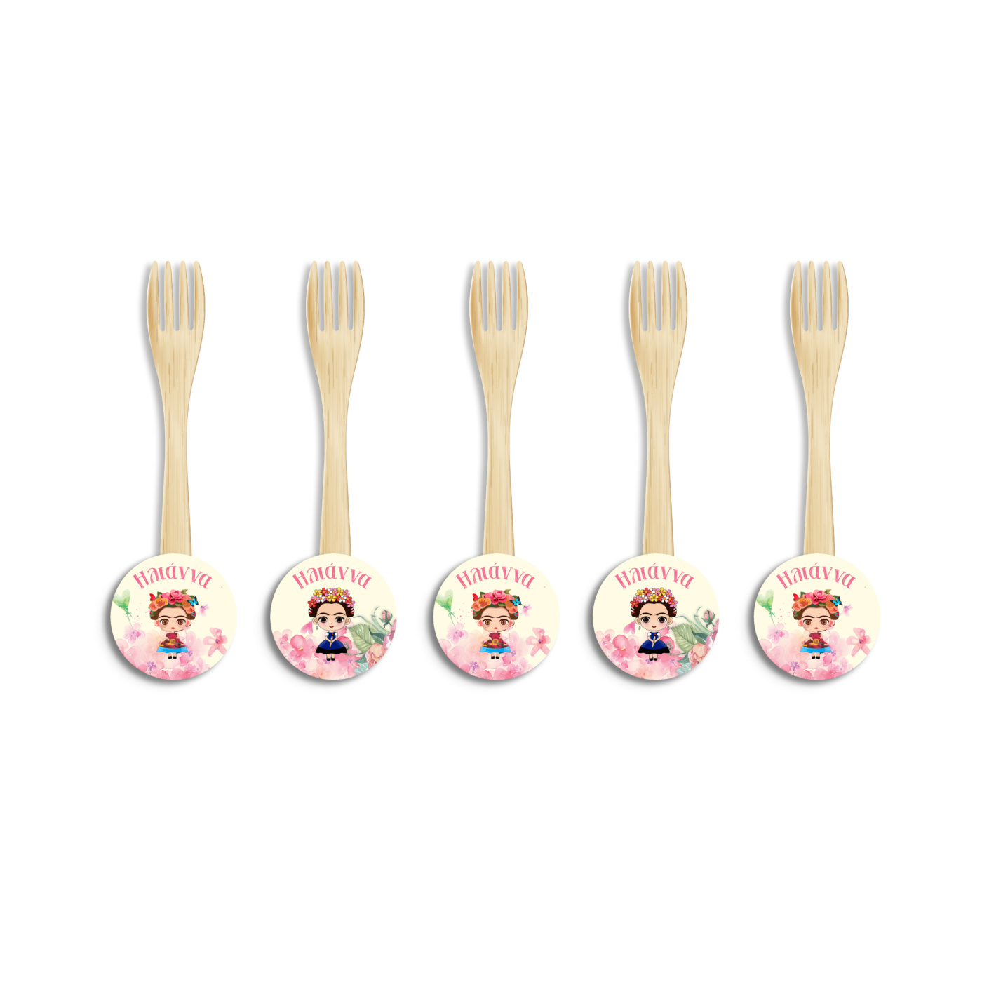 Ξύλινα Πιρουνάκια με όνομα Frida Kahlo για τον θεματικό μπουφέ σας.