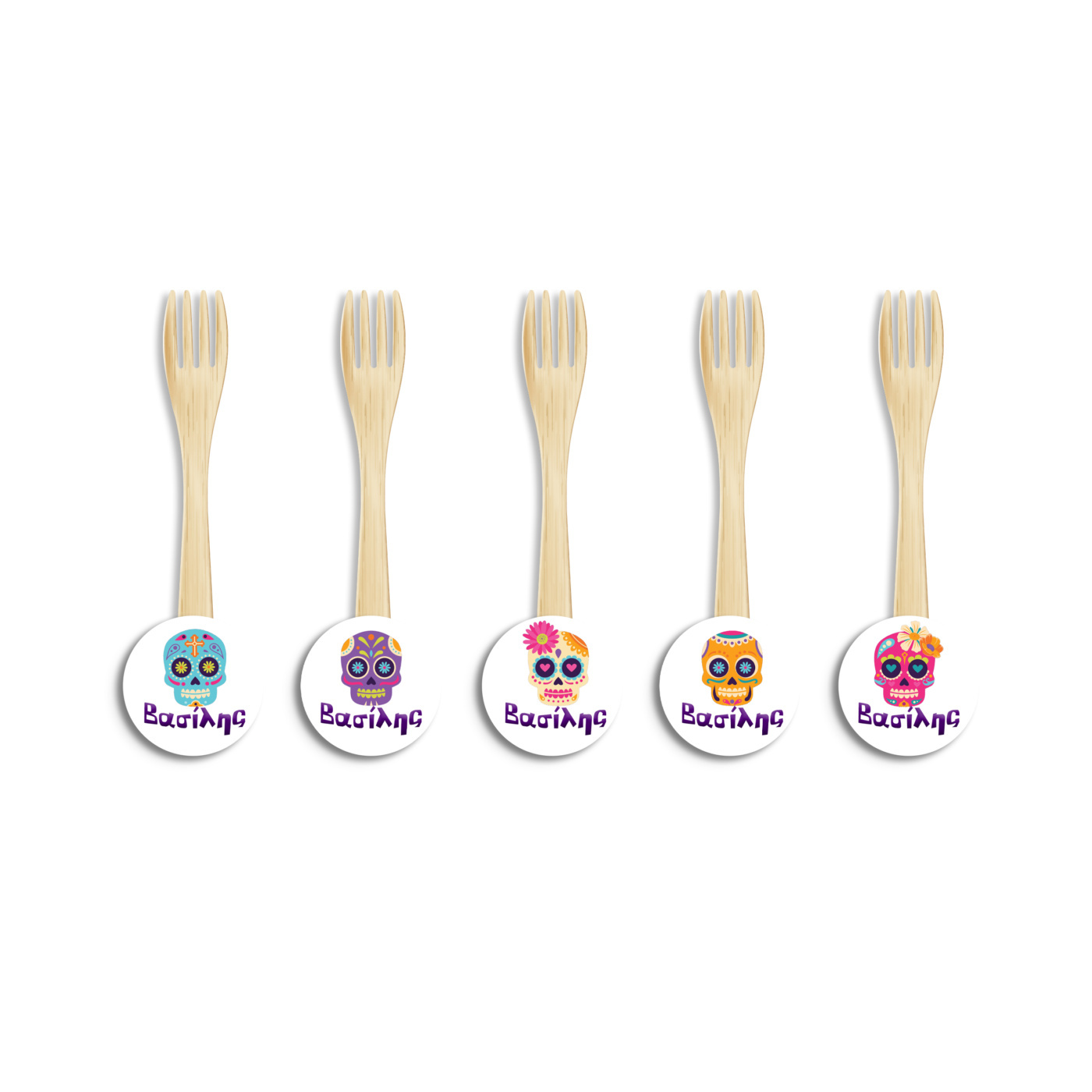Ξύλινα Πιρουνάκια με όνομα Halloween Νεκροκεφαλές για τον θεματικό μπουφέ σας.