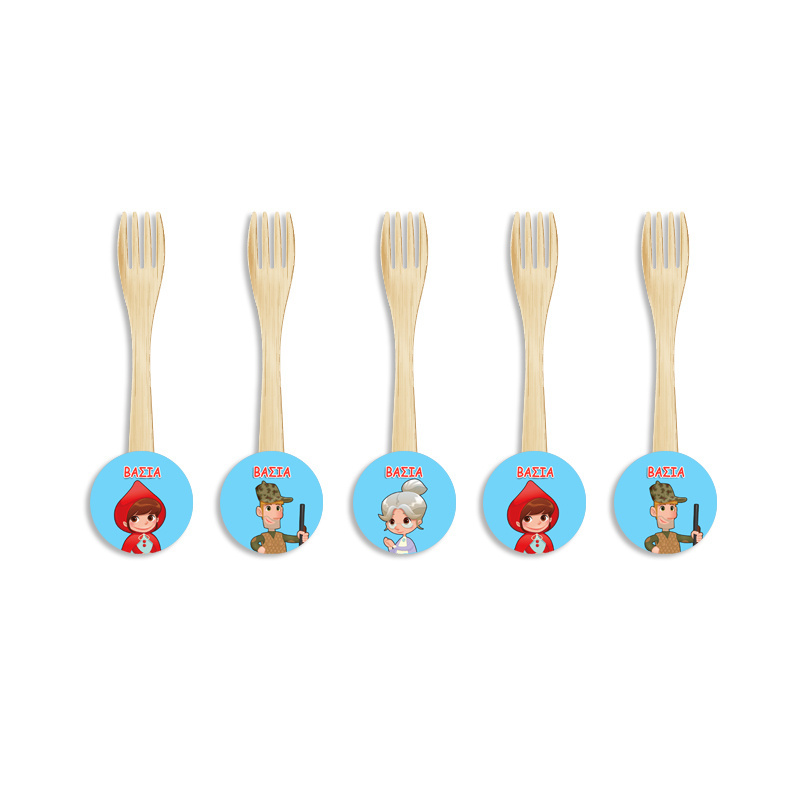 Ξύλινα Πιρουνάκια με όνομα Κοκκινοσκουφίτσα για τον θεματικό μπουφέ σας.