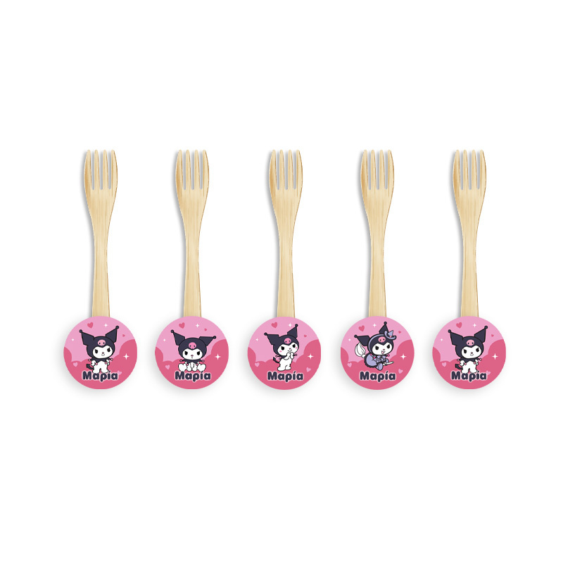 Ξύλινα Πιρουνάκια με όνομα Kuromi για τον θεματικό μπουφέ σας.