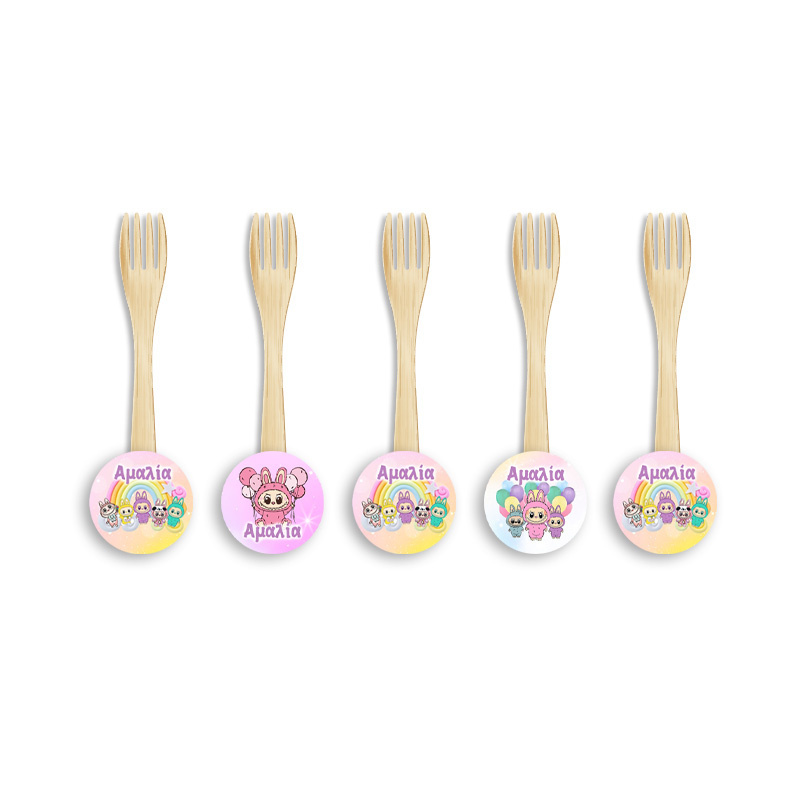 Ξύλινα Πιρουνάκια με όνομα Labubu για τον θεματικό μπουφέ σας.