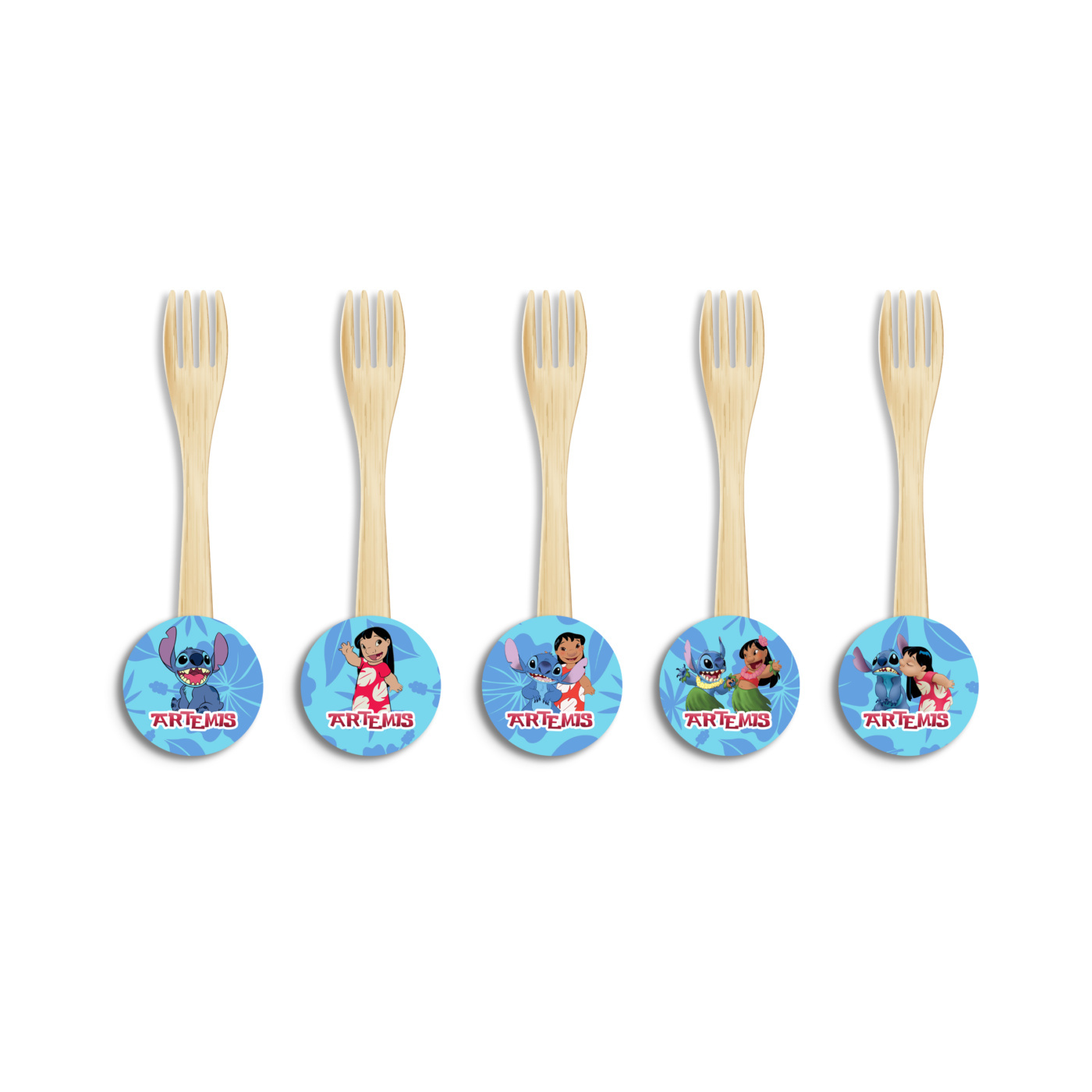 Ξύλινα Πιρουνάκια με όνομα Lilo & Stitch για τον θεματικό μπουφέ σας.