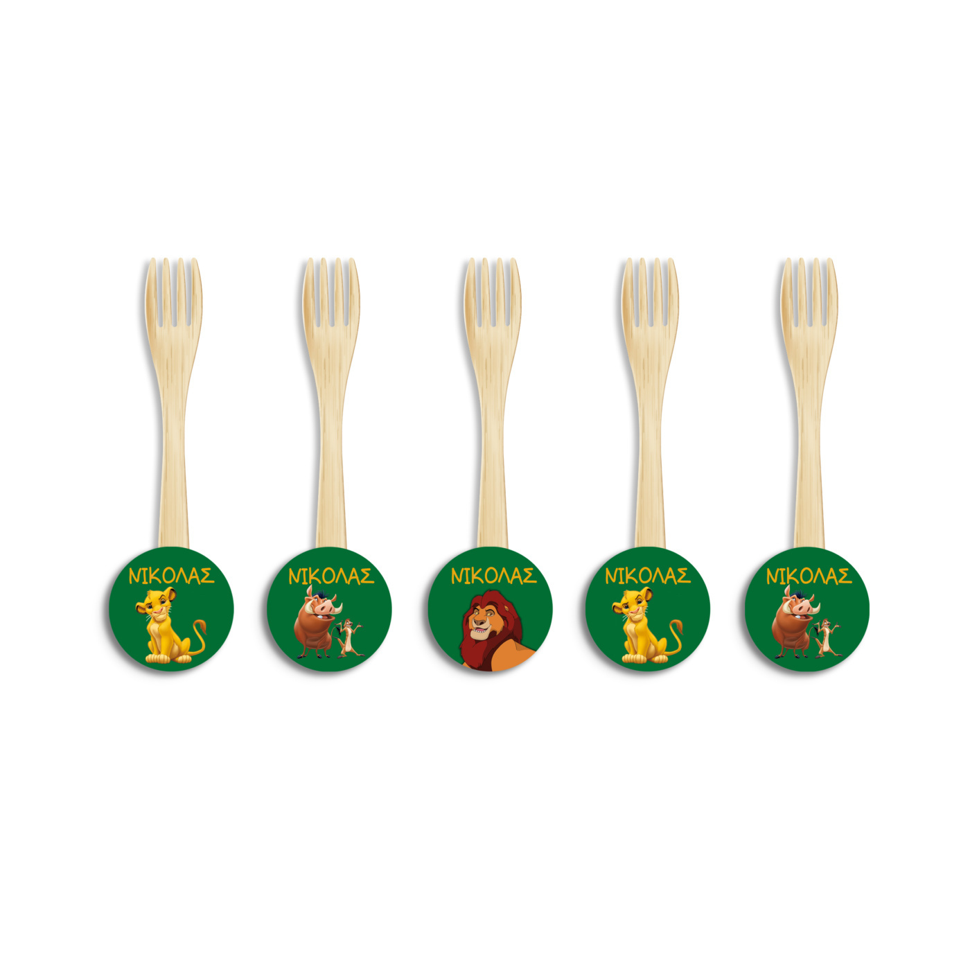 Ξύλινα Πιρουνάκια με όνομα Lion King για τον θεματικό μπουφέ σας.