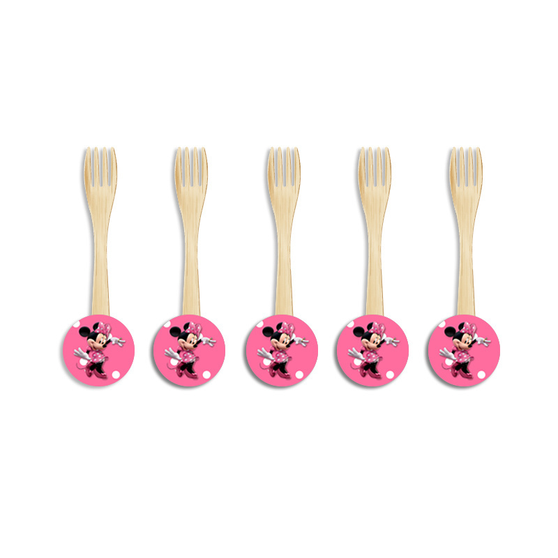 Ξύλινα Πιρουνάκια με όνομα Minnie για τον θεματικό μπουφέ σας.