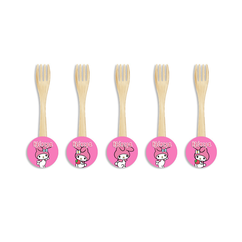 Ξύλινα Πιρουνάκια με όνομα My Melody για τον θεματικό μπουφέ σας.