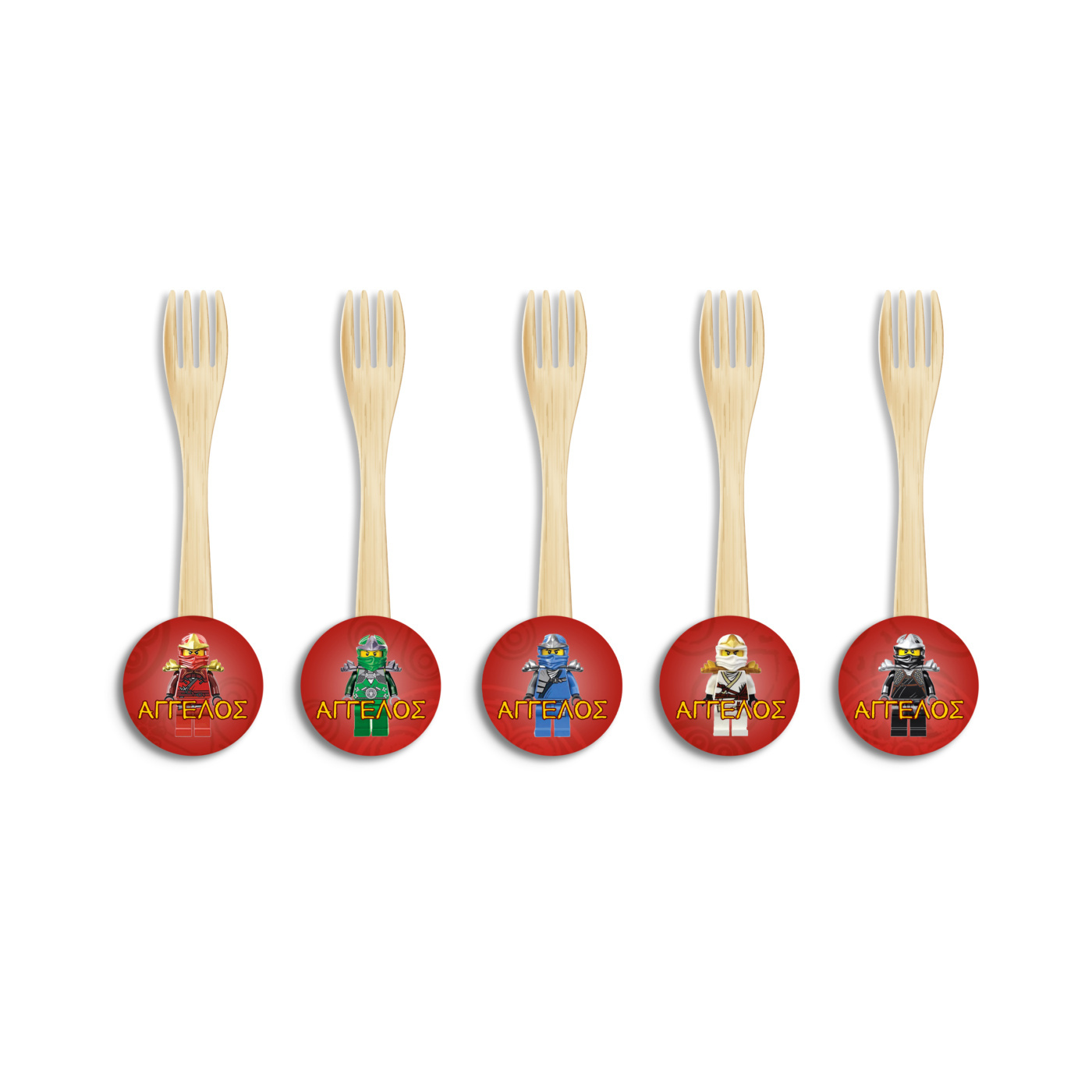 Ξύλινα Πιρουνάκια με όνομα Ninjago για τον θεματικό μπουφέ σας.