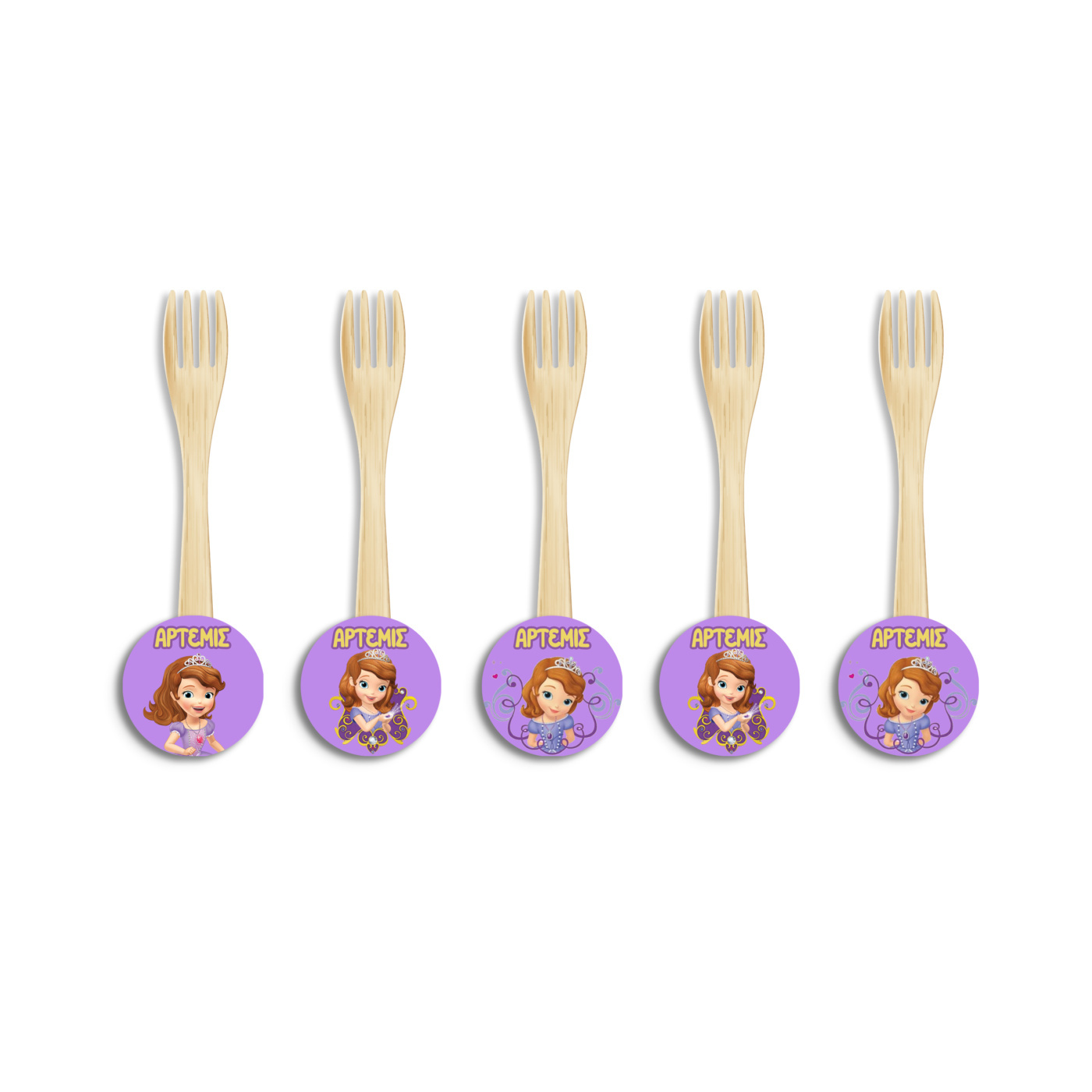 Ξύλινα Πιρουνάκια με όνομα Πριγκίπισσα Σοφία για τον θεματικό μπουφέ σας.