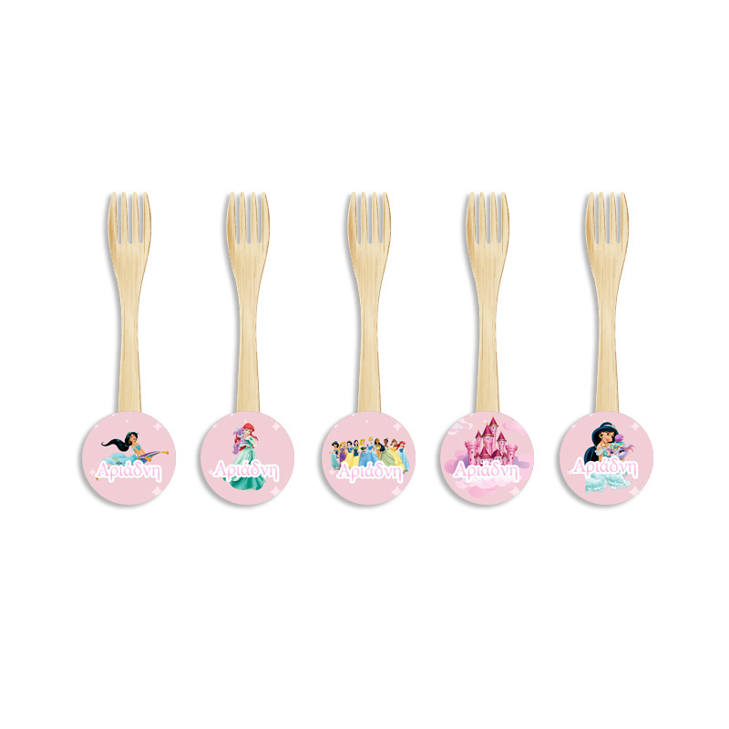 Ξύλινα Πιρουνάκια με όνομα Princess για τον θεματικό μπουφέ σας.