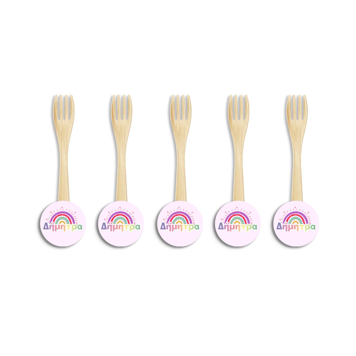 Ξύλινα Πιρουνάκια με όνομα Retro Rainbow για τον θεματικό μπουφέ σας.