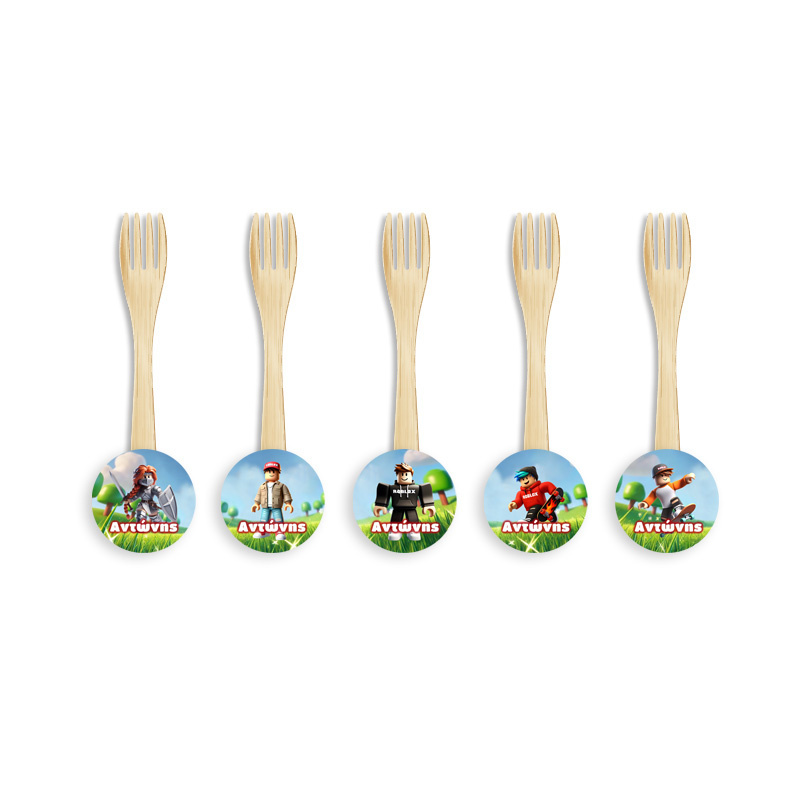 Ξύλινα Πιρουνάκια με όνομα Roblox για τον θεματικό μπουφέ σας.