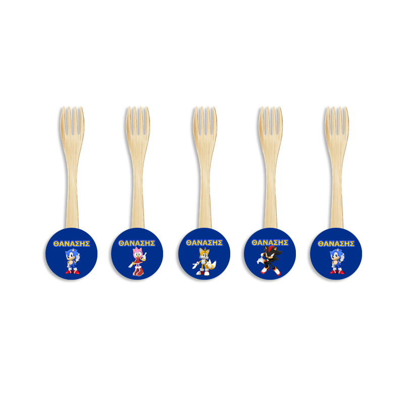 Ξύλινα Πιρουνάκια με όνομα Sonic για τον θεματικό μπουφέ σας.