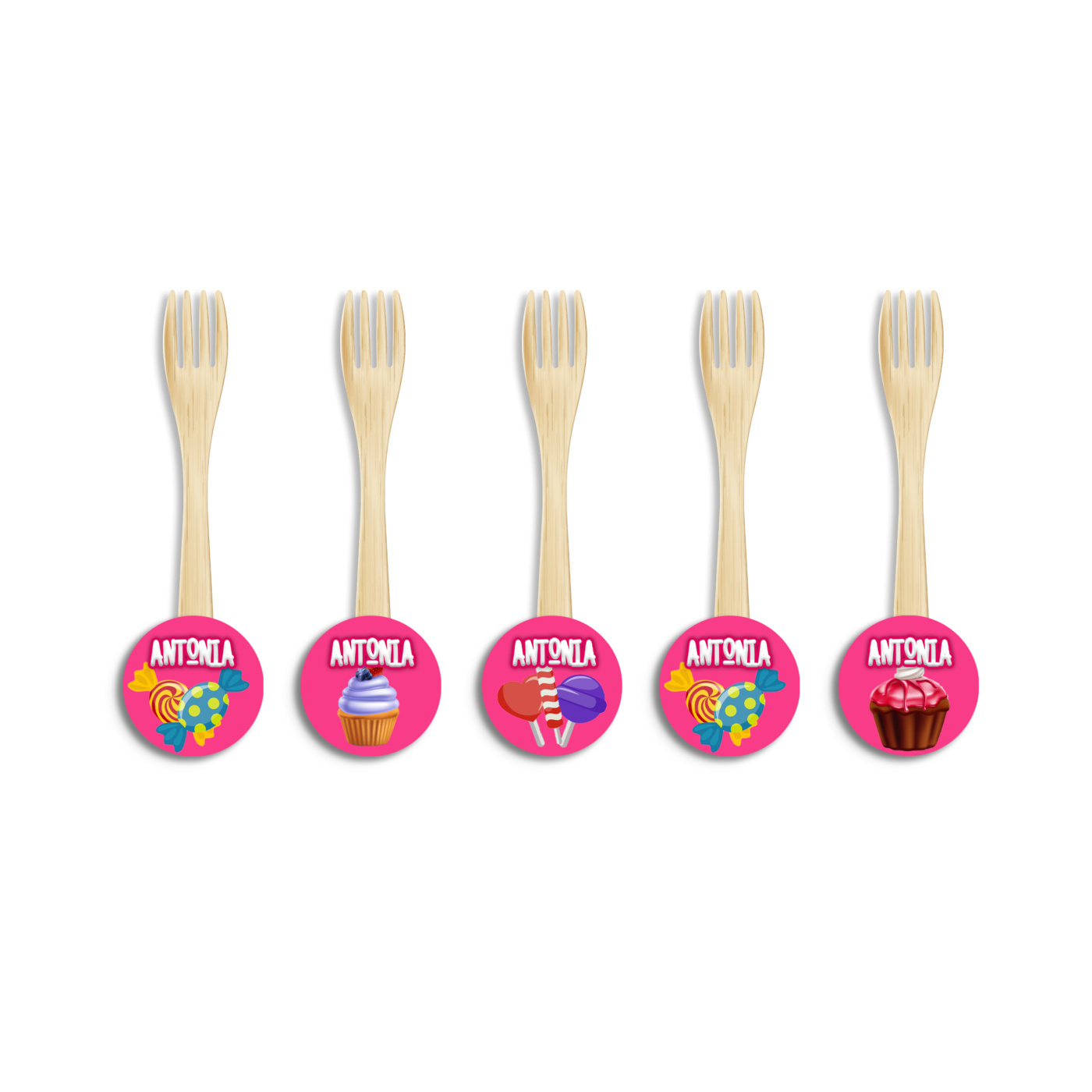 Ξύλινα Πιρουνάκια με όνομα Sweet Shop για τον θεματικό μπουφέ σας.