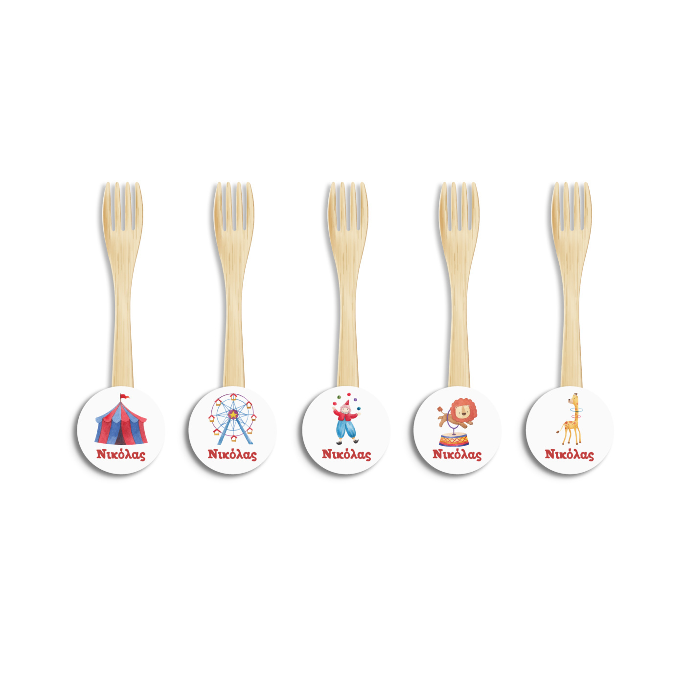 Ξύλινα Πιρουνάκια με όνομα Ταίρκο για τον θεματικό μπουφέ σας.