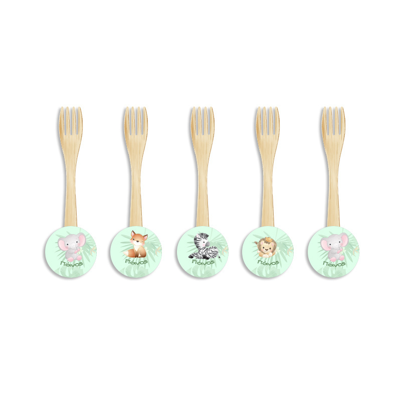 Ξύλινα Πιρουνάκια με όνομα Ζωάκια ζούγκλας για τον θεματικό μπουφέ σας.