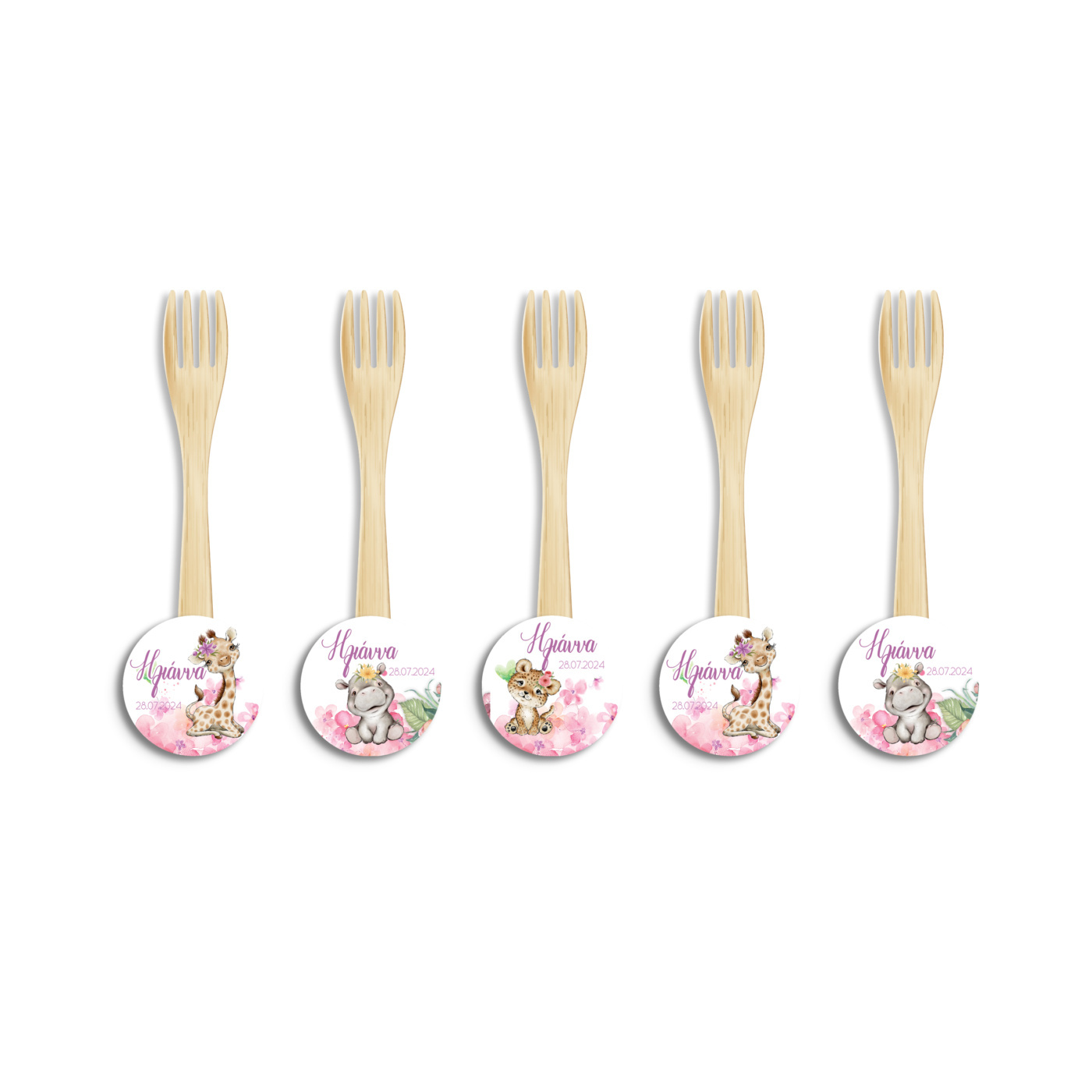 Ξύλινα Πιρουνάκια με όνομα Ζωάκια ζούγκλας Κορίτσι για τον θεματικό μπουφέ σας.