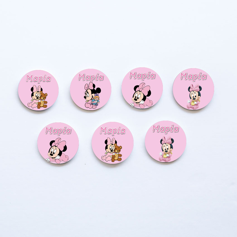 Κονκάρδες με θέμα την Baby Minnie, ιδανικές για μπομπονιέρα, για δωράκι στους καλεσμένους ή για να διακοσμήσετε με αυτές τα αγαπημένα σας αντικείμενα!