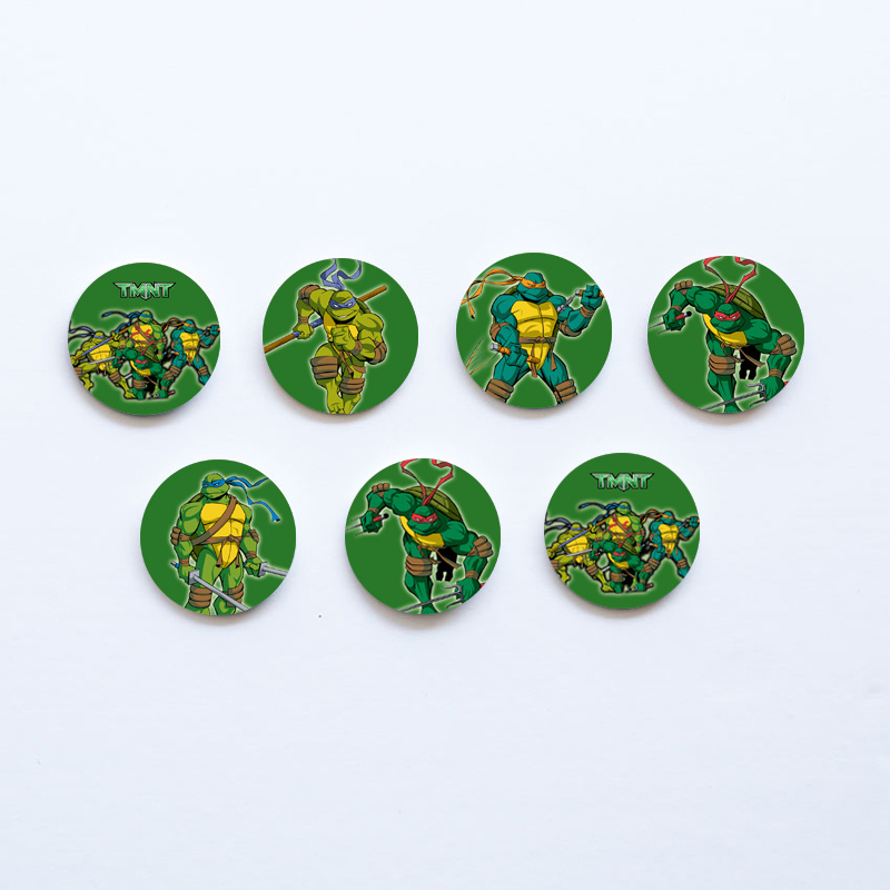 Κονκάρδες με θέμα τα Χελωνονιντζάκια, ιδανικές για μπομπονιέρα, για δωράκι στους καλεσμένους ή για να διακοσμήσετε με αυτές τα αγαπημένα σας αντικείμενα!