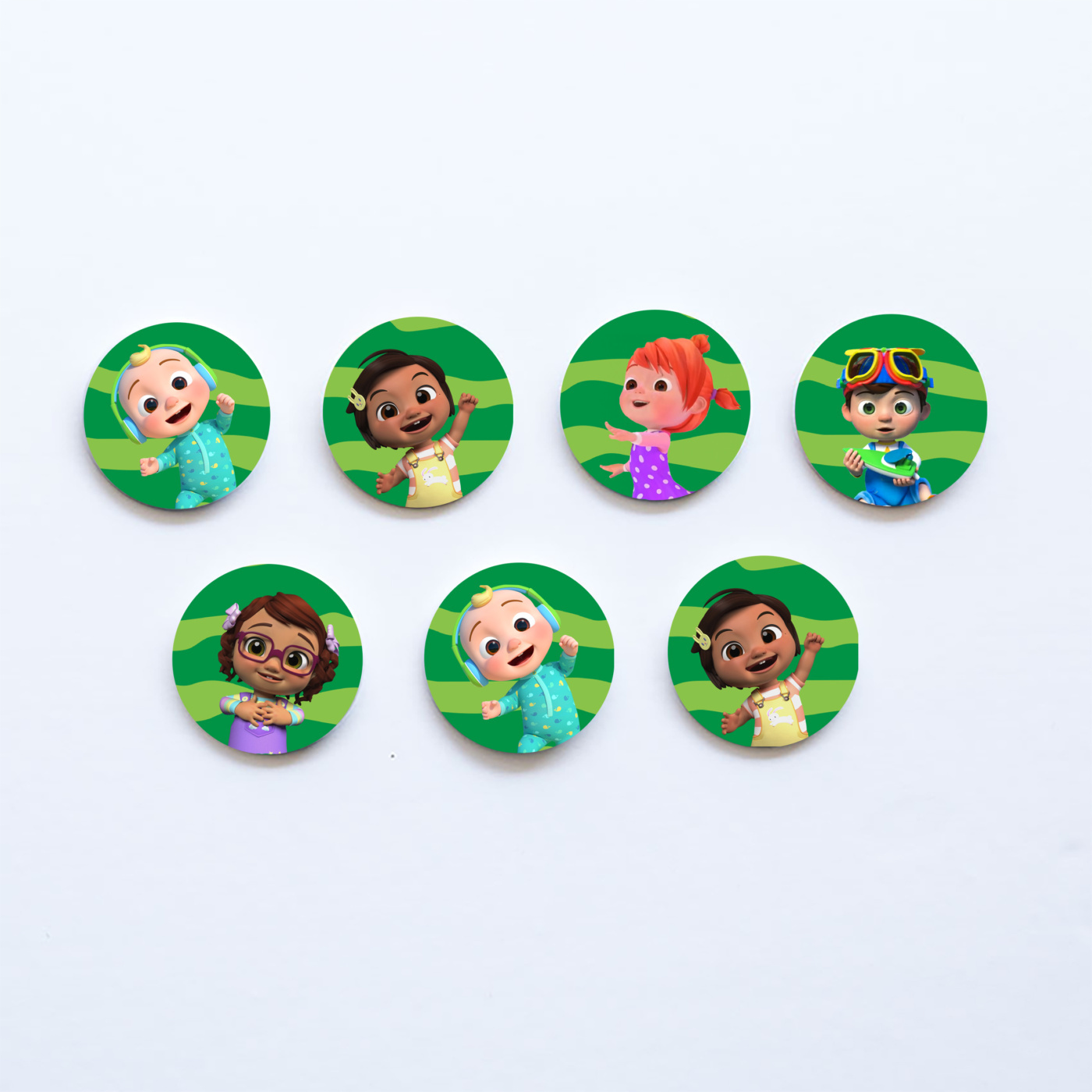 Κονκάρδες με θέμα Cocomelon, ιδανικές για μπομπονιέρα, για δωράκι στους καλεσμένους ή για να διακοσμήσετε με αυτές τα αγαπημένα σας αντικείμενα!