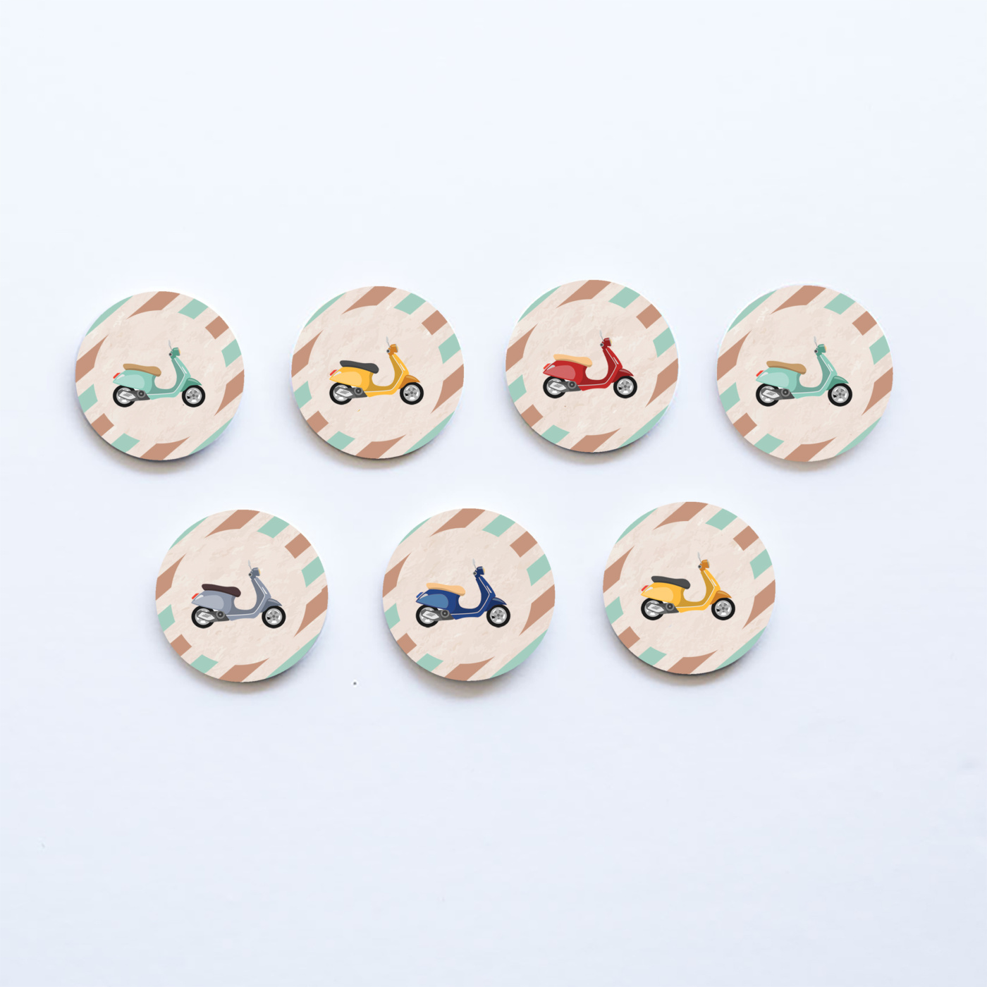 Κονκάρδες με θέμα Βέσπα, ιδανικές για μπομπονιέρα, για δωράκι στους καλεσμένους ή για να διακοσμήσετε με αυτές τα αγαπημένα σας αντικείμενα!