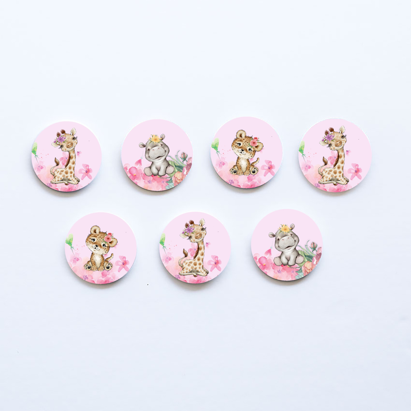Κονκάρδες με θέμα Ζωάκια ζούγκλας Κορίτσι, ιδανικές για μπομπονιέρα, για δωράκι στους καλεσμένους ή για να διακοσμήσετε με αυτές τα αγαπημένα σας αντικείμενα!