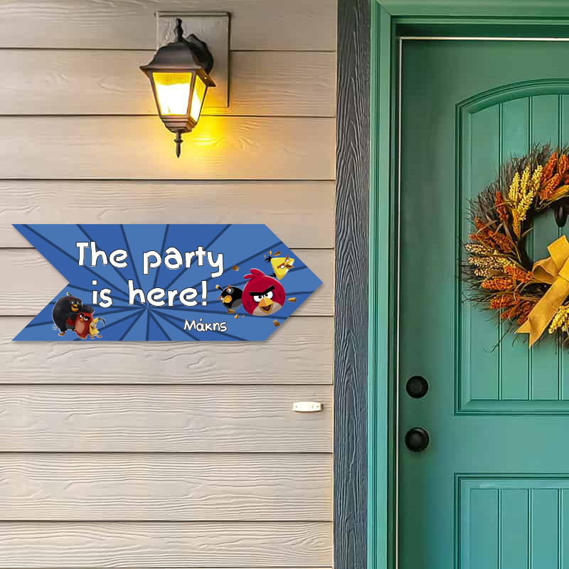 Υπέροχη ξύλινη πινακίδα Angry Birds, προσαρμοσμένη με το όνομα του παιδιού, διαστάσεων 40cm x 15cm.