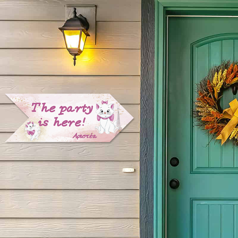 Υπέροχη ξύλινη πινακίδα Αριστόγατες Μαρί, προσαρμοσμένη με το όνομα του παιδιού, διαστάσεων 40cm x 15cm.