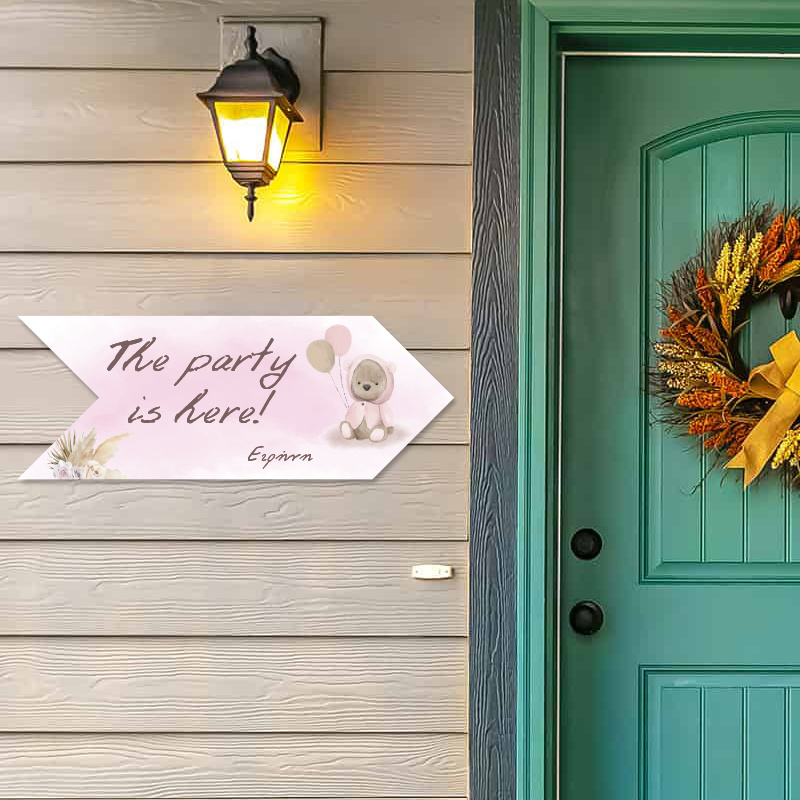 Υπέροχη ξύλινη πινακίδα Αρκουδάκι για Κορίτσι, προσαρμοσμένη με το όνομα του παιδιού, διαστάσεων 40cm x 15cm.